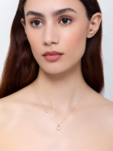 14kt Green Amethyst Pear and Diamond Bezel Necklace
